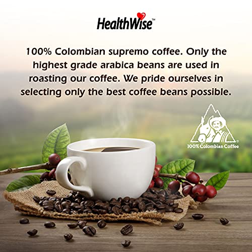 HealthWise 100% Colombian Supremo, Low Acid Ground Coffee, 12-Ounce Cans (Pack of 2)